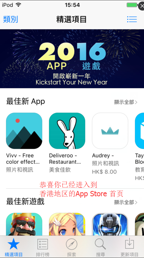 六、退出后就是香港地区的App Store界面了