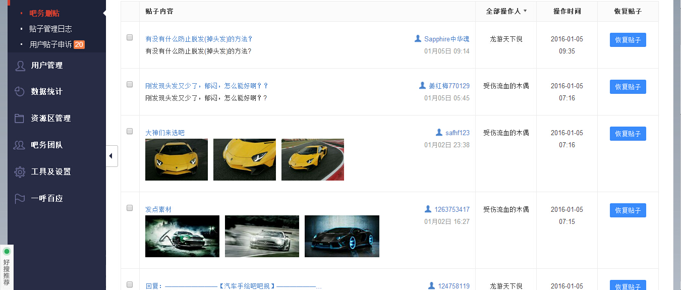 申请理由:近期小广告和水贴频发,盛情开通超级验证码!下面是吧务删除记录和封禁记录,往吧务同意!谢谢