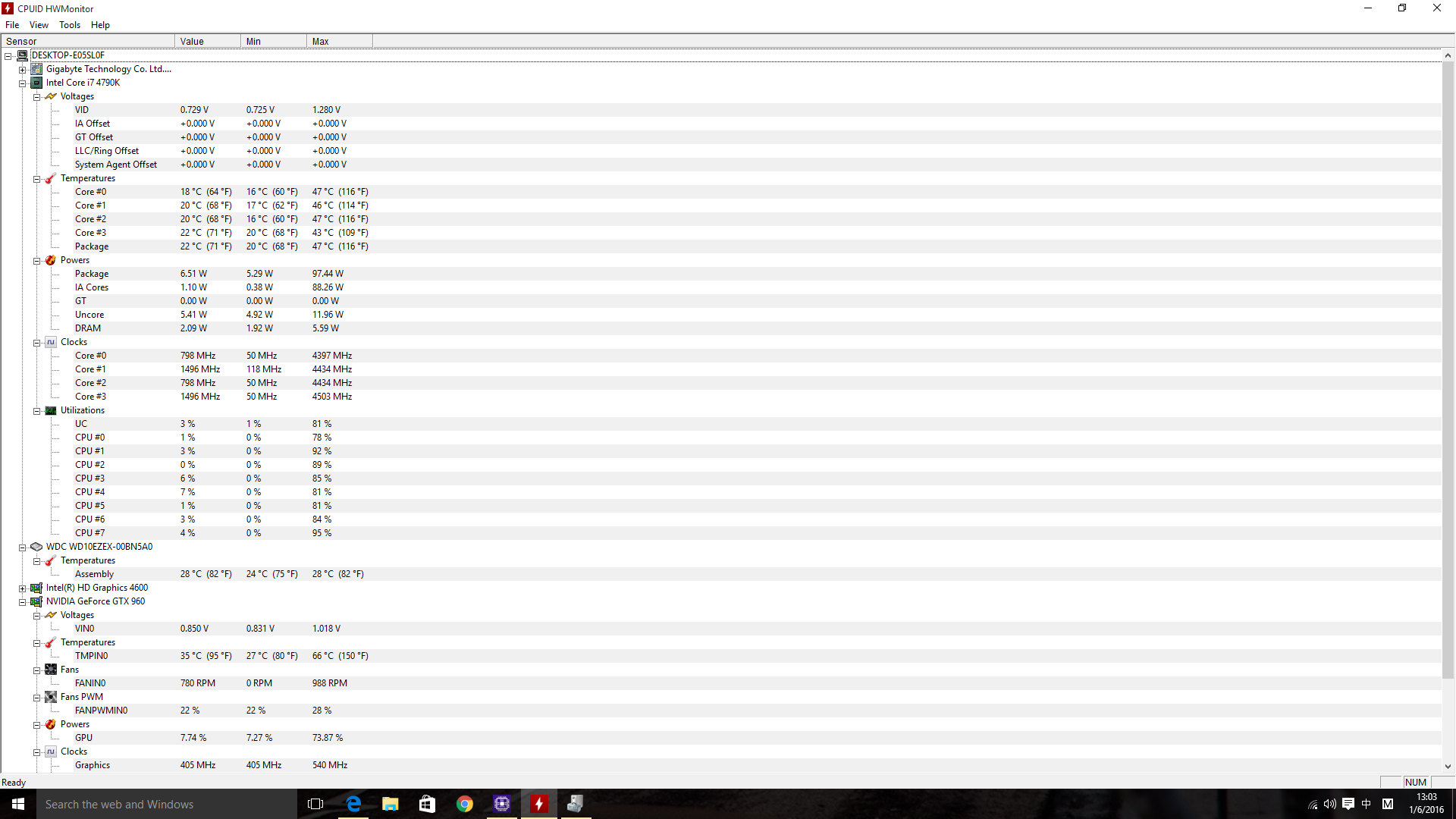 刚才开了个GTA5 然后检测了一下硬件温度 cpu平均温度在46℃ 显卡最高温时66℃ 机箱温度开游戏一分钟内从室温22℃飙升到24℃ 之后最高在28℃左右 请教各位大神装水冷的话最佳效果大概可以冷却到多少度呐