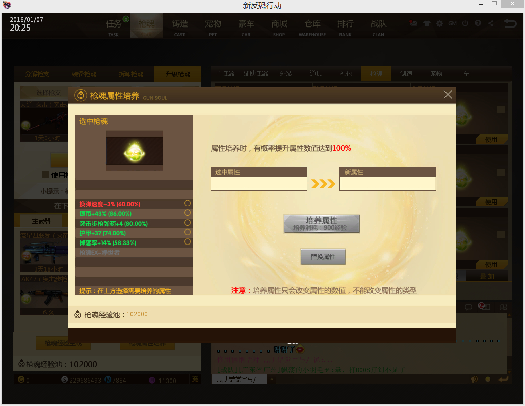 分解永久34星枪那天出了2个掉落率的枪魂,+8% 跟 +9%的,经过培养去到了12%,还有1个金魂是星期2送了30天葵蛇EBR分的