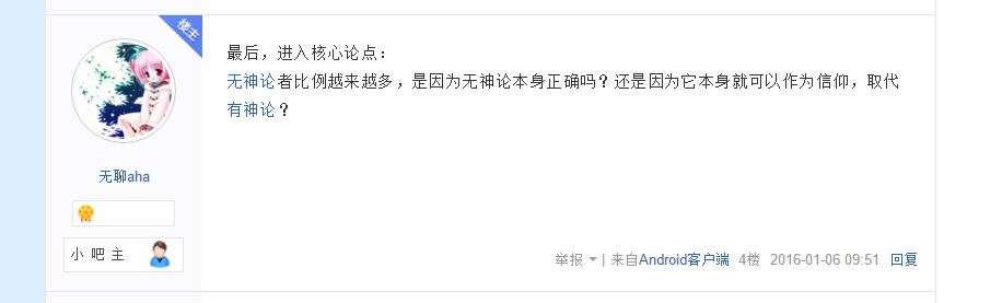 但这个现象并没有和无神论有太多的关系,更非意味着无神论有什么优越性, 也绝对非小吧所言,无神论也能成什么(优势)信仰。