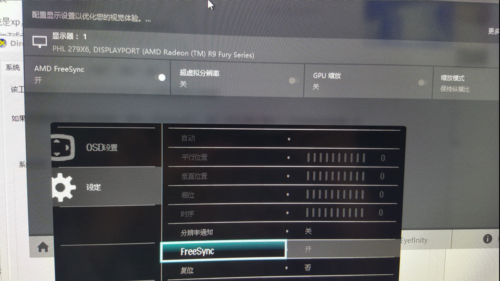 显示器是PHL 279X6,显卡FURY X,开了没卵用
