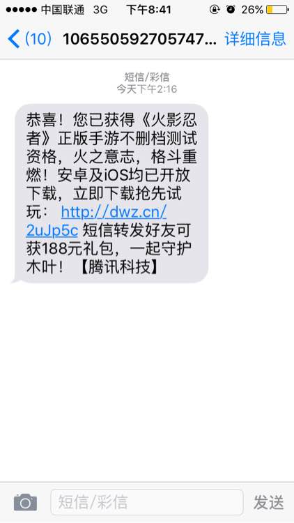 今儿收到了这内测资格短信,不知道是不是骗子钓鱼……这种链接安全吗??