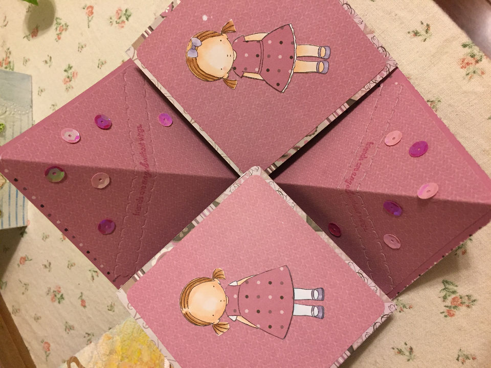看了朗姆的折叠卡,本想做个上色版的,印章尺寸不合适,就用想用上之前上色的小女孩~希望花花喜欢这个粉色~还有小机关的哟~
