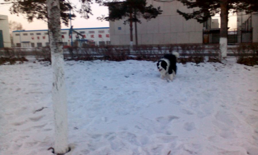 唉,我的狗狗就难见到雪啦。
