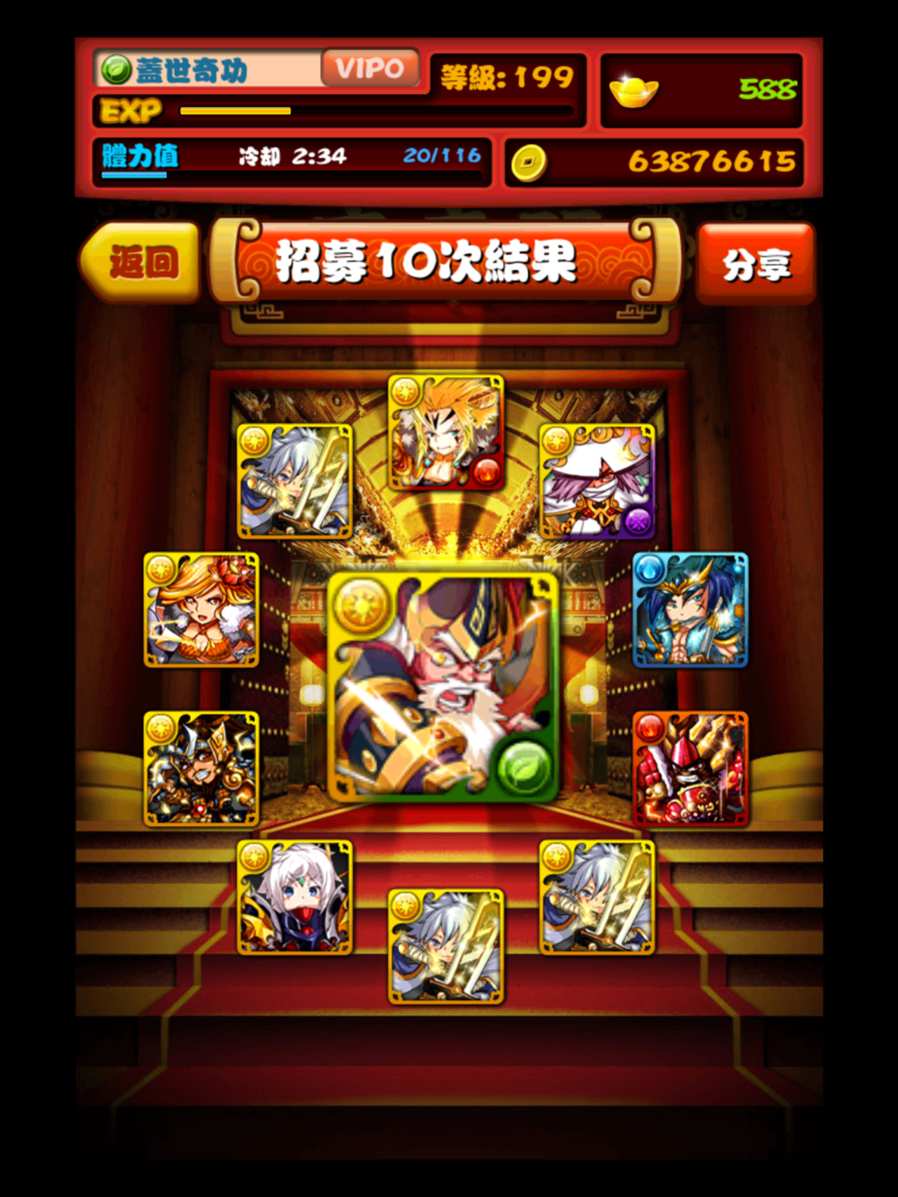 看来是5L了,现在放下老婆的神将,貌似老婆比自己的号神将给力点。