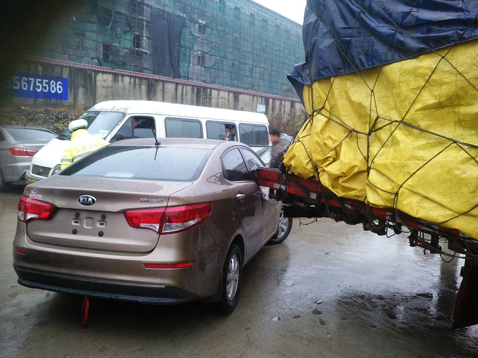新车开了两天就刮了,被一个挂车挡了道,从后方绕过时刮的,门瘪了,玻璃都挤碎了,心痛!