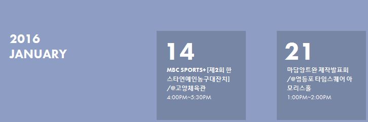 1月14日 (四): MBC SPORTS+ "2nd Hannstar Celebrity Basketball Match" 16.00~17.30(第二届艺人篮球赛)
