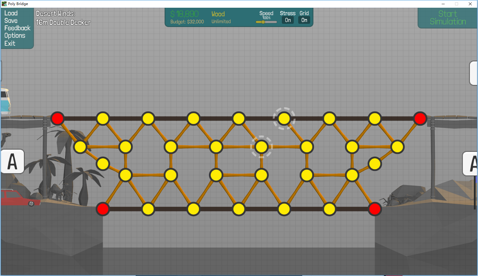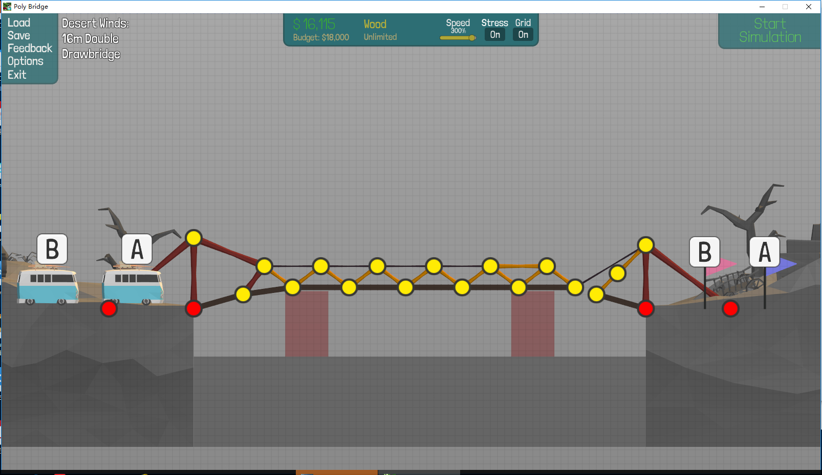 第6关终于通了 预算18000 实际16115 说实话我不是很满意 我本想高一座完整的桥 奈何实在有难度