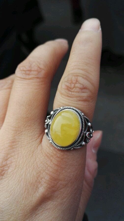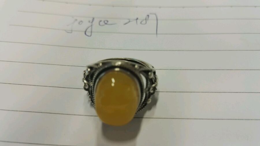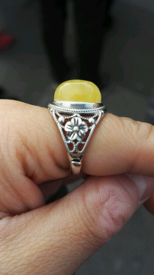 海漂蜜蜡戒指,925银托,编号160by