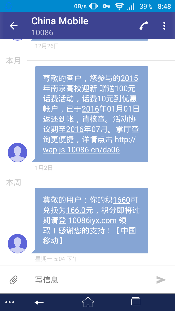 醉了,居然0积分,这个号是今年9月份开学才开的,移动是一块钱一个积分吧,不可能有1660积分的