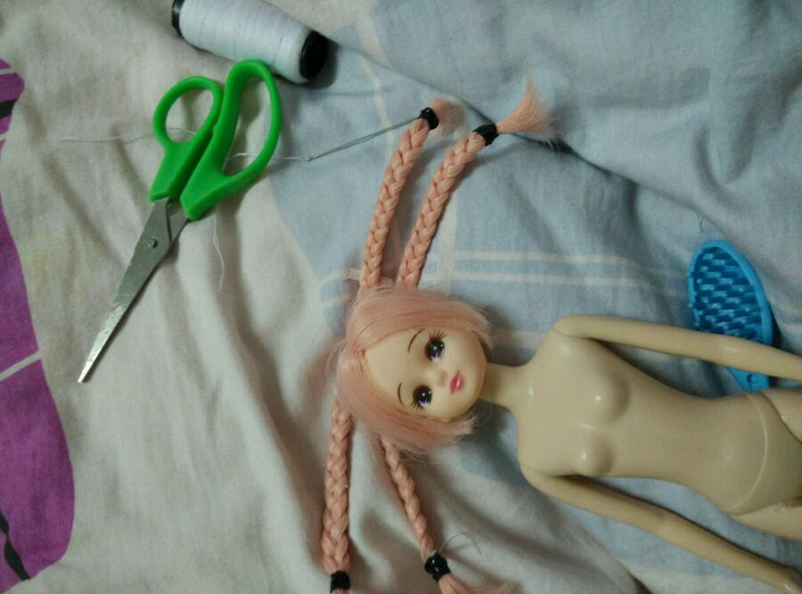 用假发护理喷雾先喷湿 扎4个辫辫
