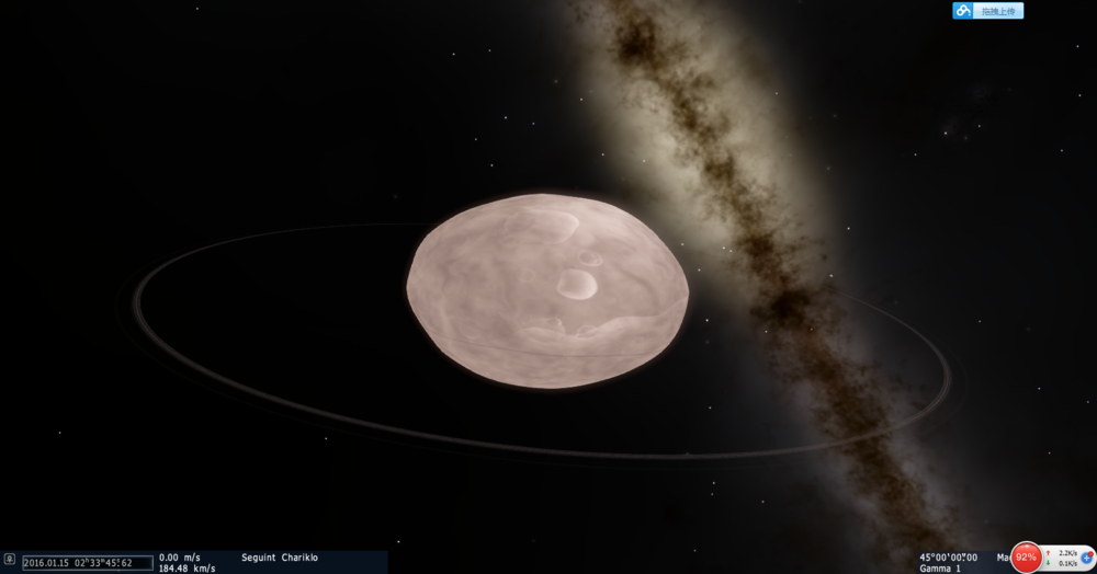 我用SE在太阳系里逛逛,发现一个小行星,这颗小行星也够奇葩的,竟然也拥有行星环,要知道太阳系中拥有行星环的天体都是大行星,一颗不起眼的小行星也拥有行星环,这也是够奇葩的,如图所示。