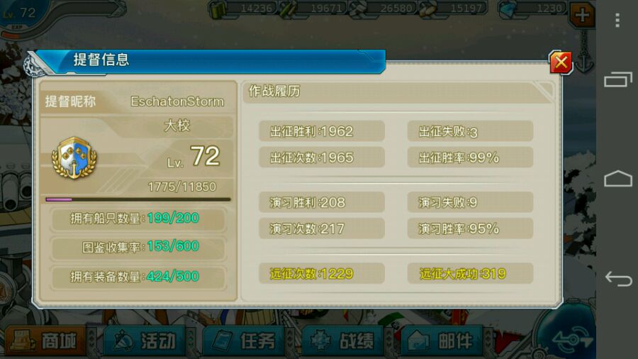 在这15级里,楼主做完了编队任务,集齐了OT8证,改造了大哥,红茶,Z1,16,31,晓,响,电,凌波,捞出了萤火虫,吃,点满了战神,敷波,响,海妈,点出了晓,凌波,