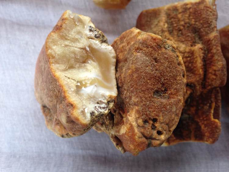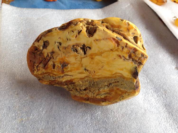 灰色的是骨珀,质地疏松,荧光偏暗。