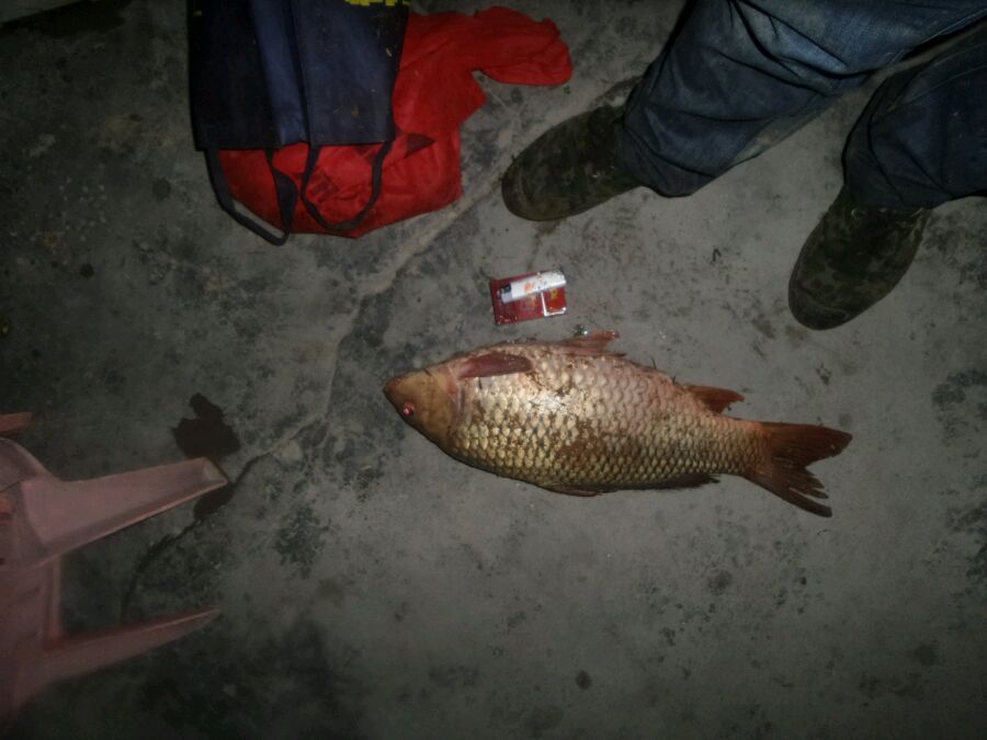 电站坝脚夜钓中一尾大鲤