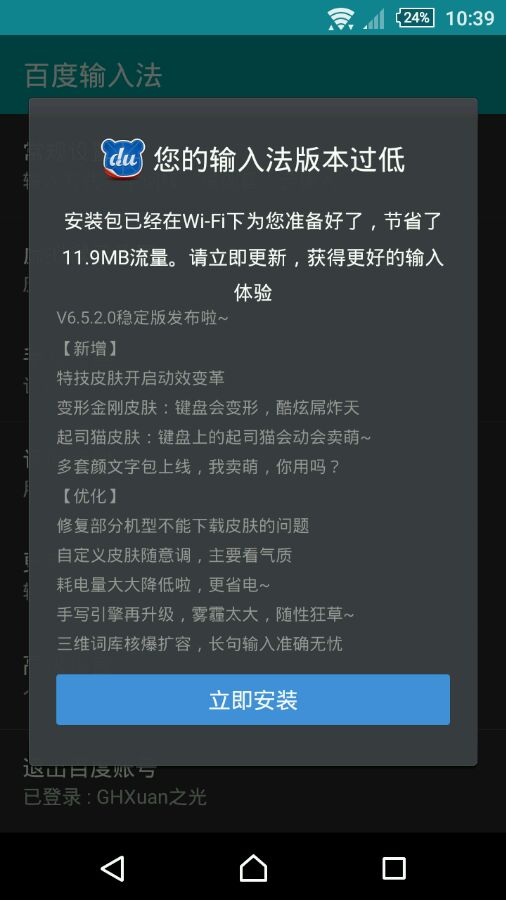 我的百度输入法从不提示升级。