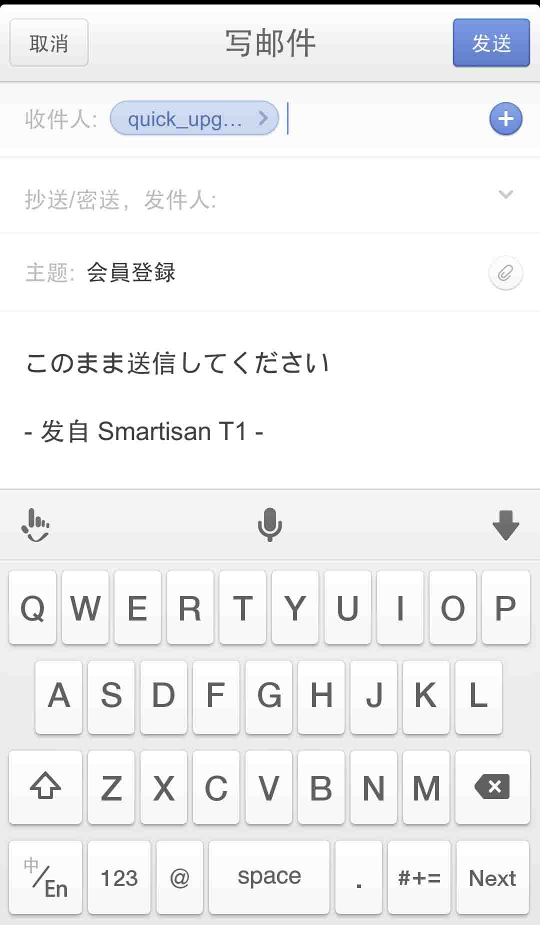 * 这个界面有两种送信方式,1.是点蓝色的是启动你的邮箱发送一封空信给系统