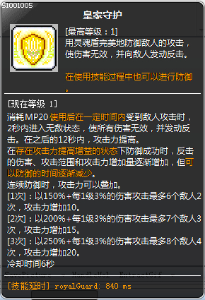 用了以后可以格挡伤害,格挡成功后进入2秒无敌状态,在2秒的无敌状态中,