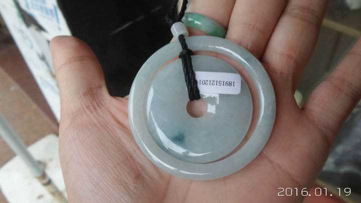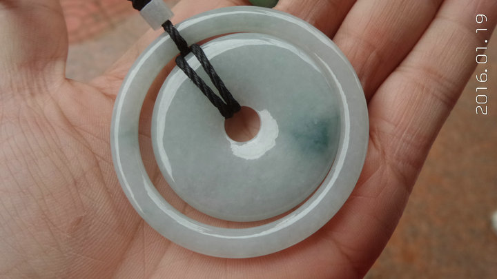 158元,完美无裂带证,略飘蓝花,环的外径55,平安扣直径41,厚5,可做车挂或者挂件,外环也可做小孩手镯,