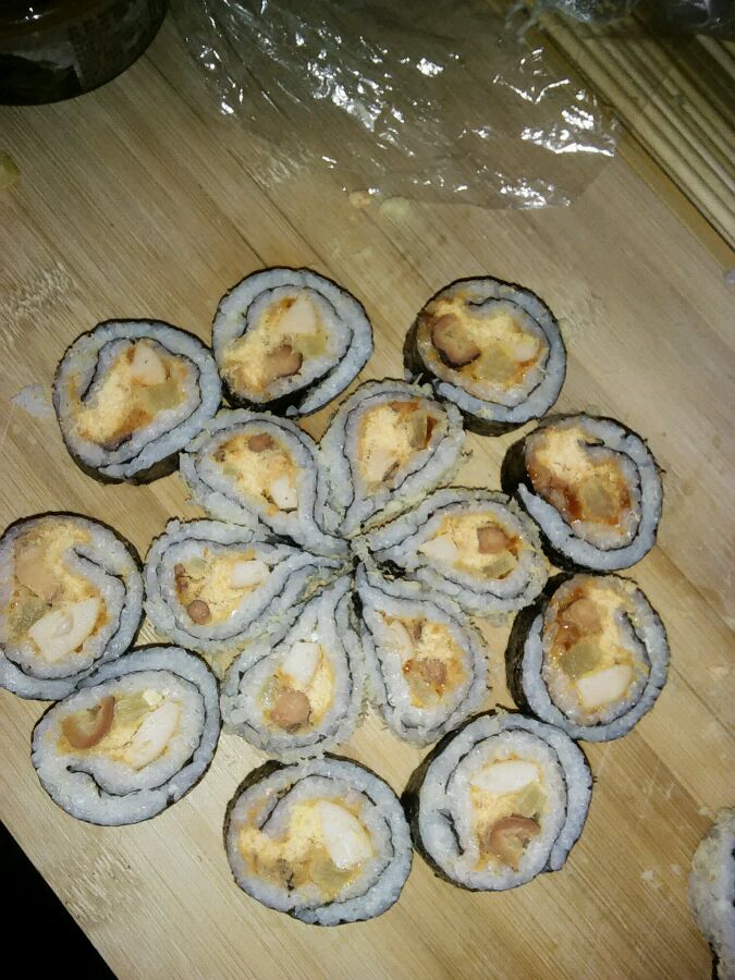 沒装盒,装盒了就精致了,我原来是卖寿司的,不像回事,我白学了