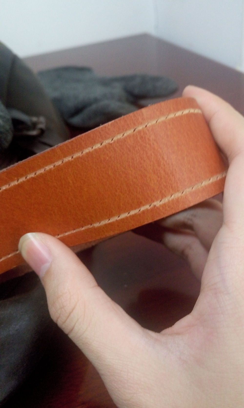 由于新手,没用最简单易操控的植鞣皮,用的原色头层水牛皮,本来想打边线,穿了半个小时,发现穿了更丑,直接拆了。