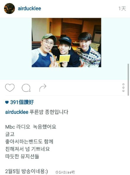 【SHINee闪耀】「160121 汇总」今日INS Twitter fb weibo更新