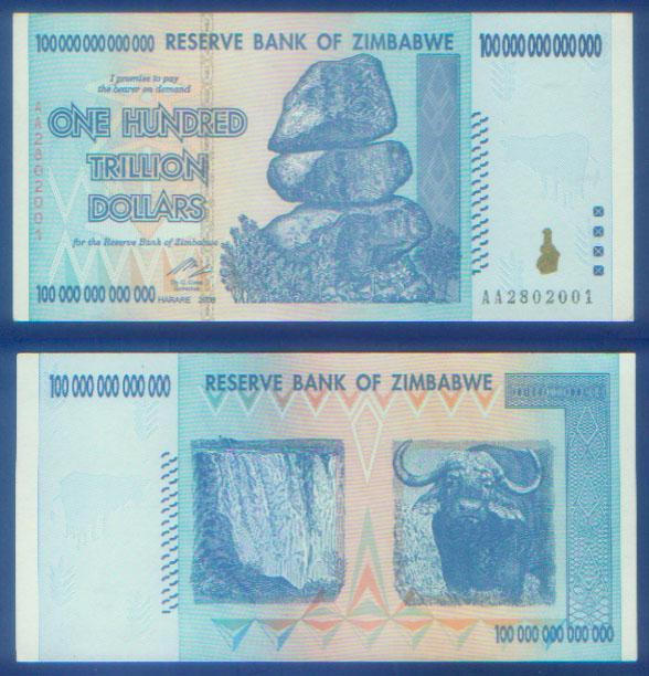 一百万亿津巴布韦币