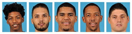 黄蜂:肯巴-沃克、林书豪、P.J-海尔斯顿、马文-威廉姆斯、斯宾塞-霍伊斯