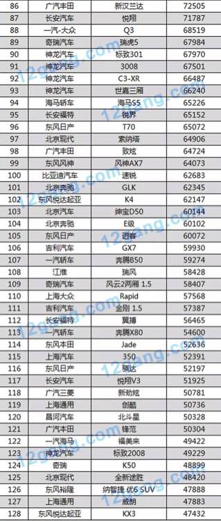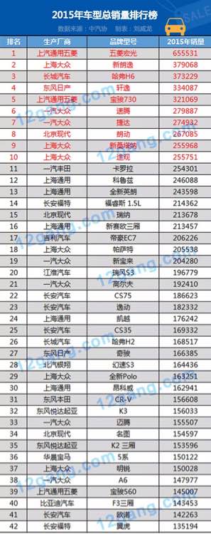 2015年汽车销量排行,最完整版
