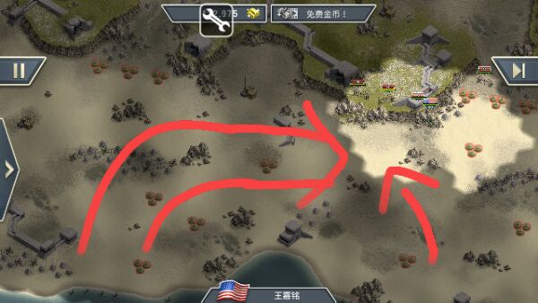 下面是进攻方向,左登,海滩右扫再挑一口进(p.s.手机上有什么好点的绘图软件,我快疯了)