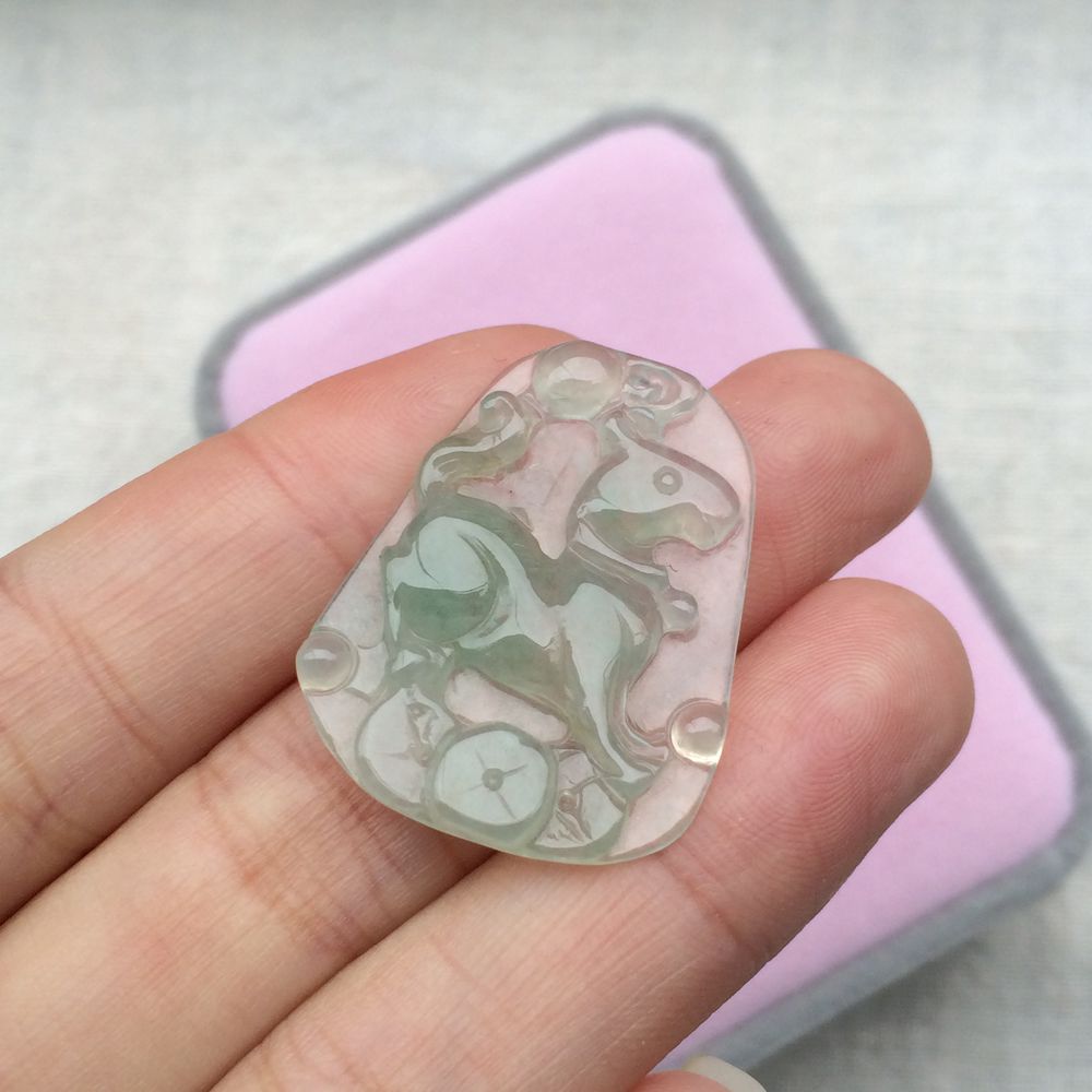 蜘蛛常乐,知足常乐,飘绿,无纹裂。28.1mm*15.7mm*14.3mm 8.92g 480米