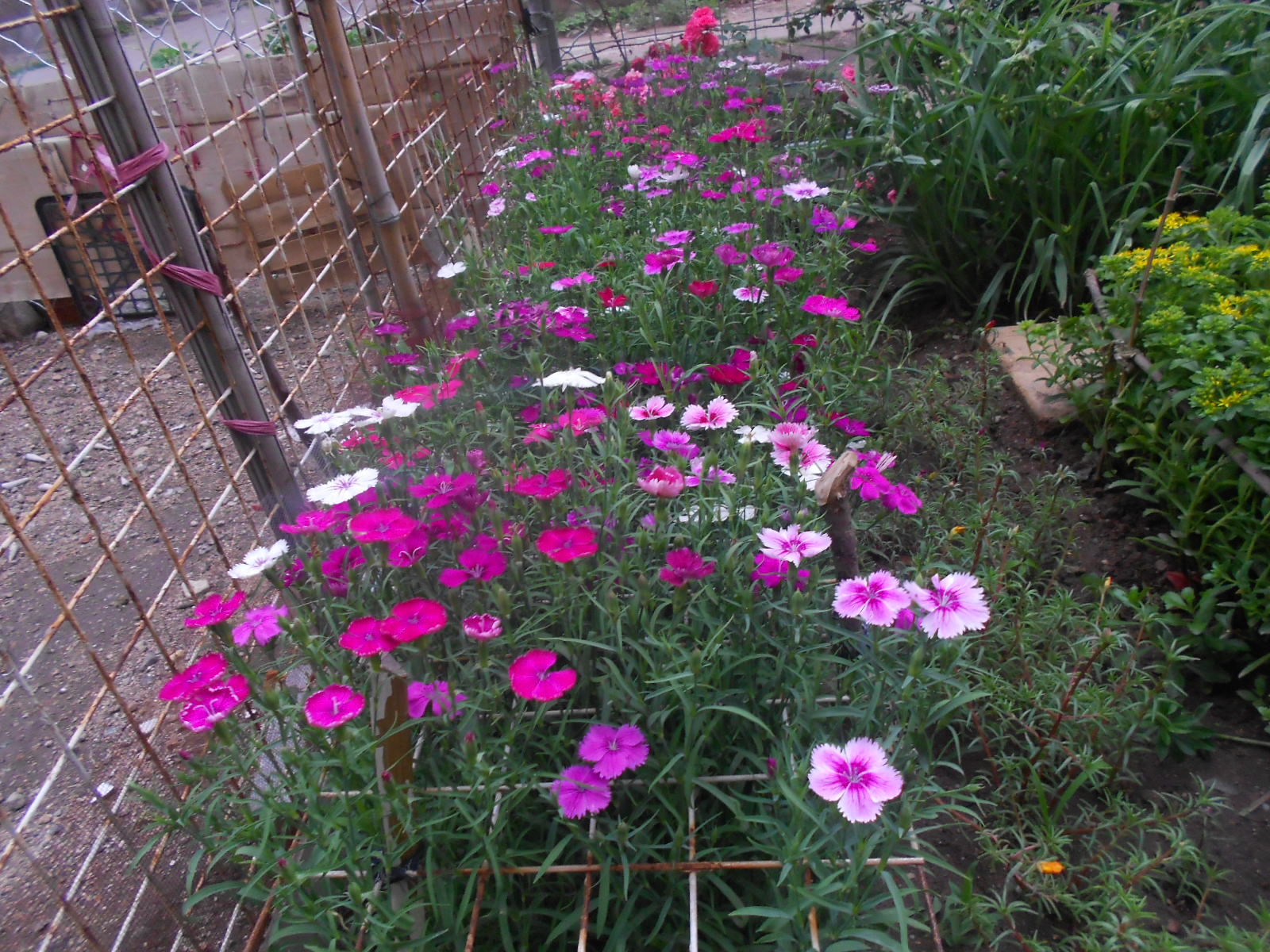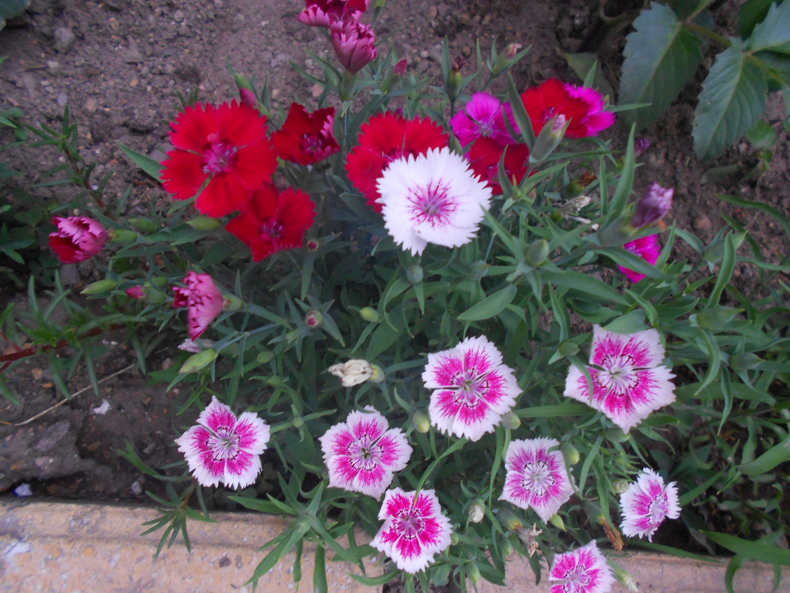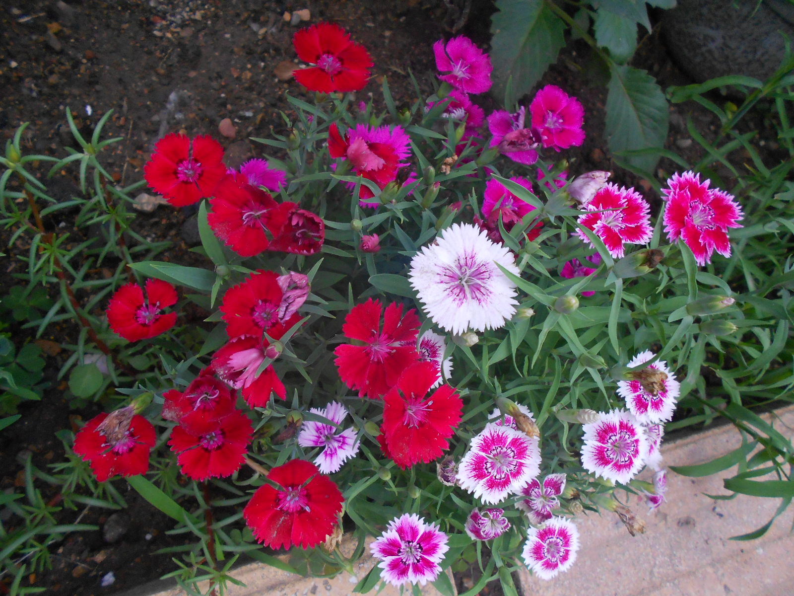 石竹地栽长得茂盛,花多又艳丽。