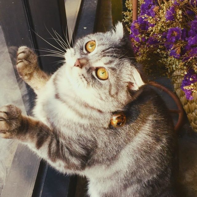 总是一副生无可恋菜刀状眼睛的蓝莓,其实只是面对我总是懒得再瞪大一点,如果:-O手里是罐头,他会把眼睛瞪得圆滚滚的~也是醉!