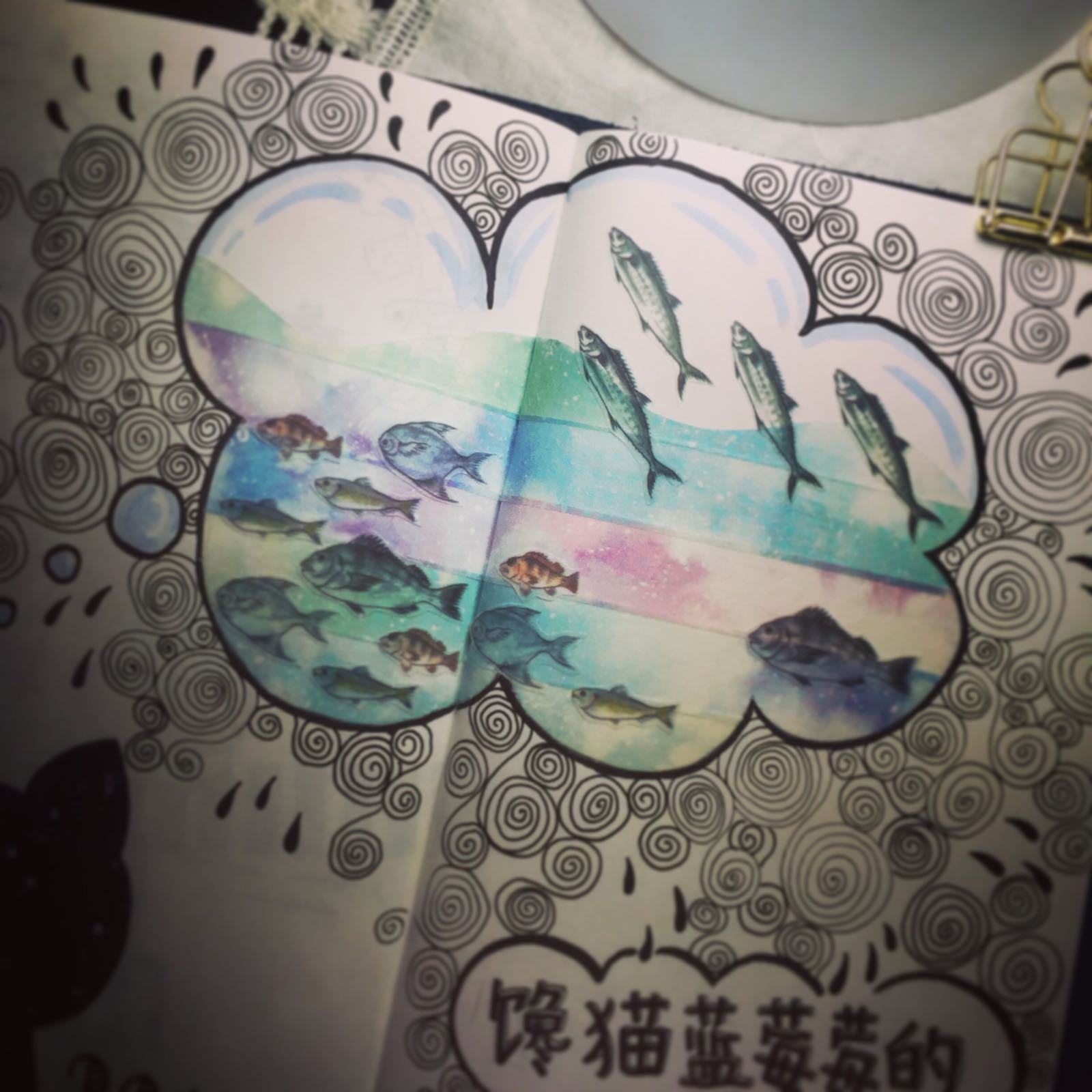 只喵吧)~于是想到哪里画到哪里,一个白天,一个黑夜连着贴了2副(第二幅后来被老公吐槽丑,然而星空大手笔的贴了好多胶带,心疼