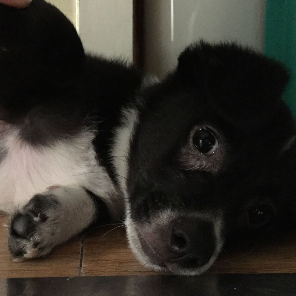两个月时候抱回来的 现在正打疫苗那 不能洗澡有点脏哈哈~~~~!!!