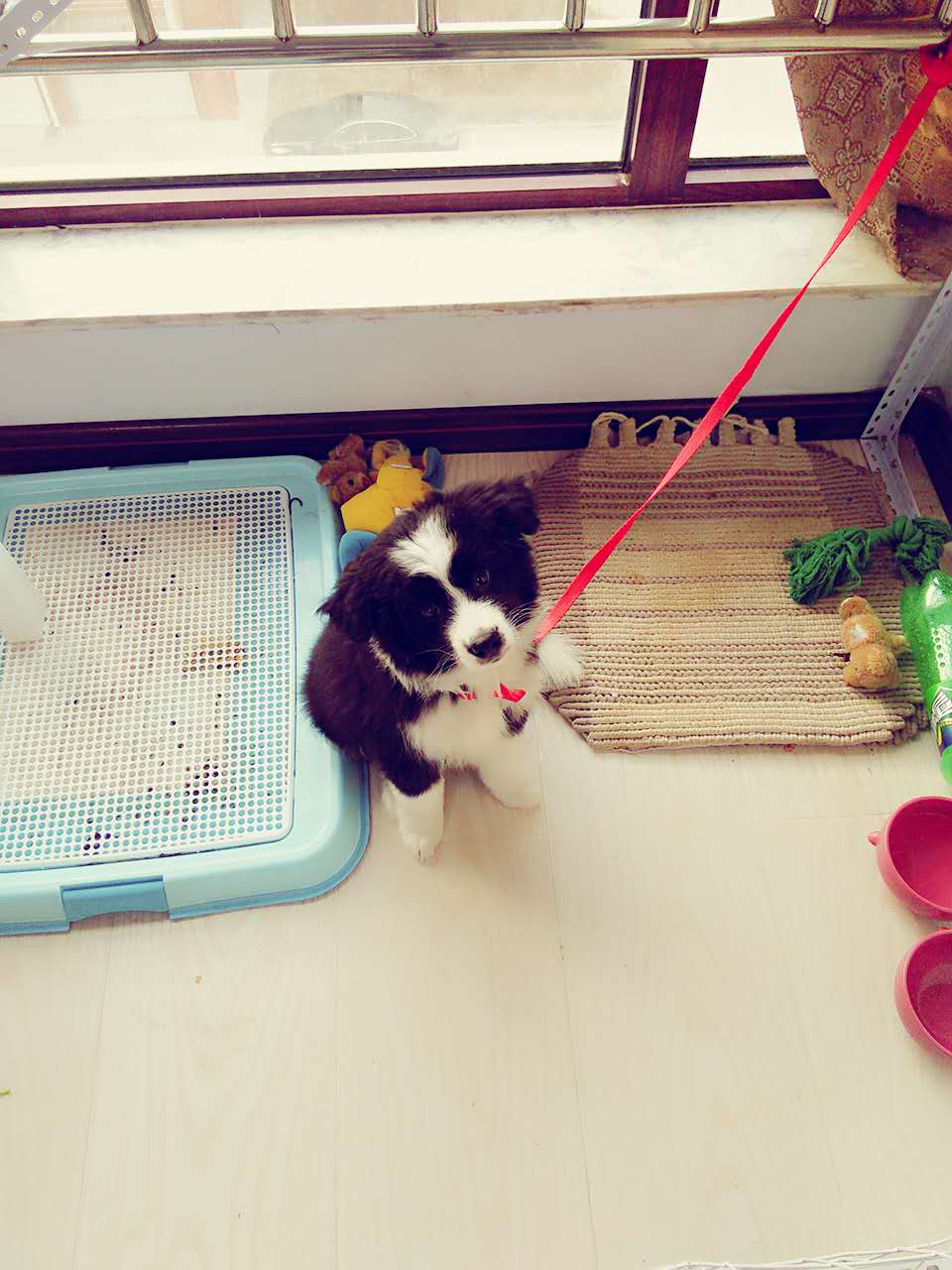 还小 等哪天能越狱了在封顶~! 我家白天随便跑就晚上睡觉关回去 我听说封顶容易造成边牧总低头毛腰 影响气质 嘎嘎