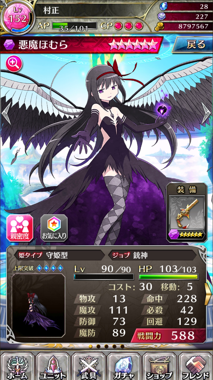 这是资料站上看到的别人的没强化过的守姬,魔比我强化过10点的还要高,运成长也高多了,我基础10运,才涨到25~看来还是要洗……