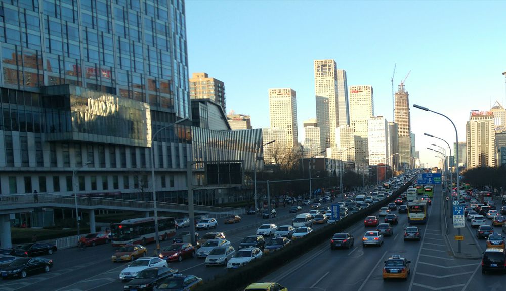 站在天桥上望北看国贸地区。