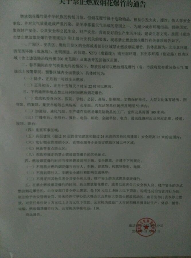 求助谁知道春节期间廊坊市区禁放爆竹区域