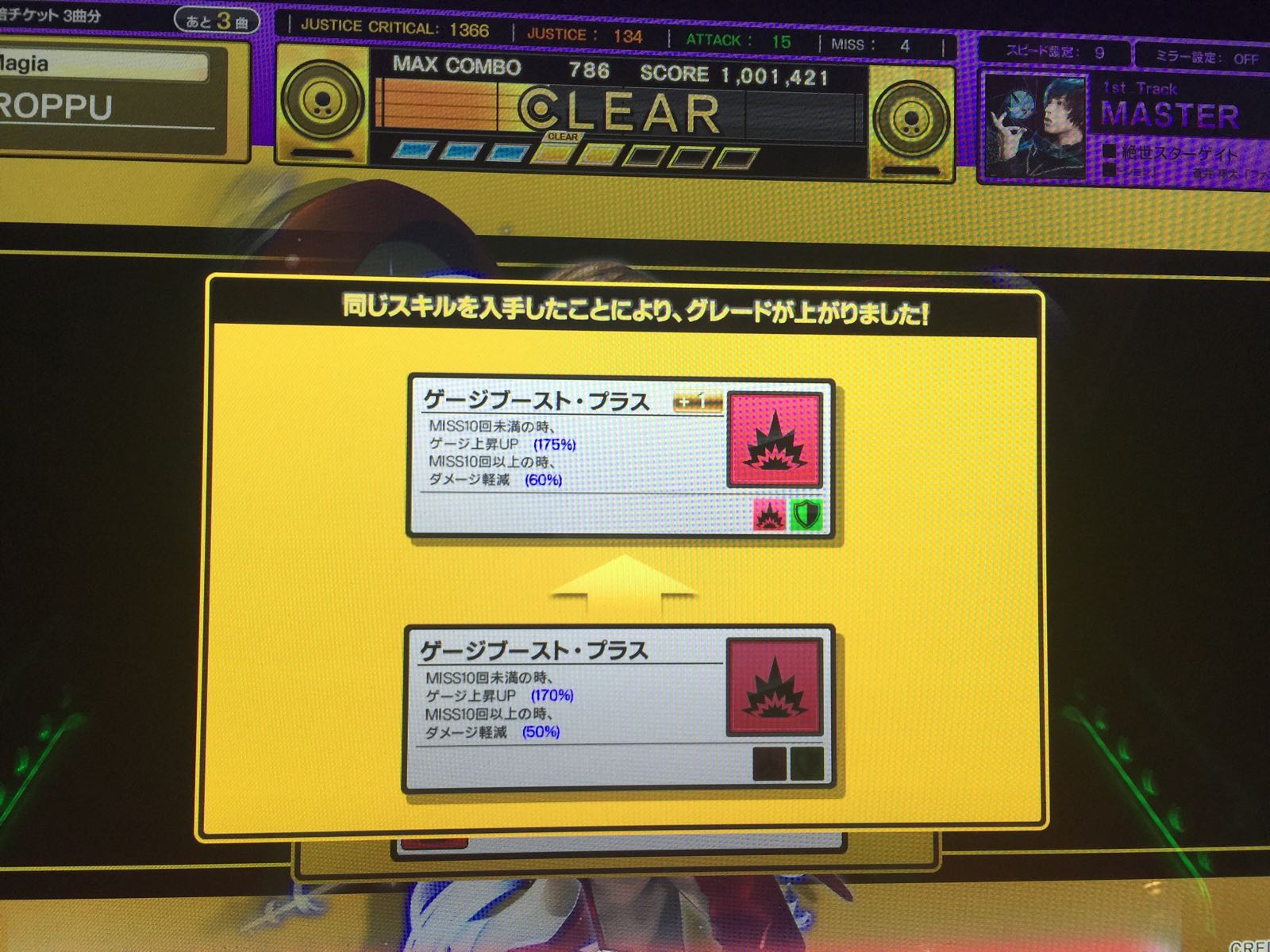 效果:miss10个以内时能量槽上升至170%,10个及以上时伤害50%轻减(3%→1.5%)