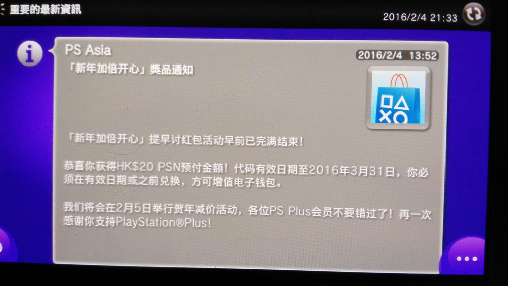 PSV收到了通知,不过我还没去看。