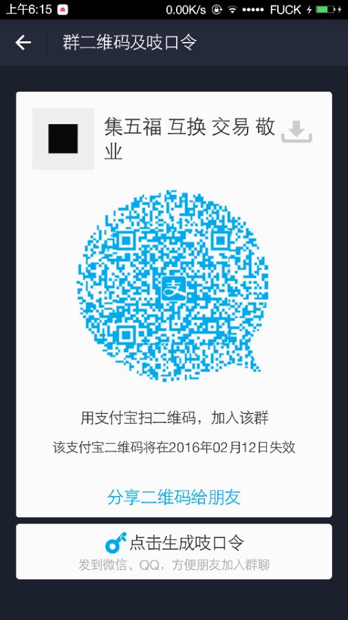 长按且复制此条消息,打开你的支付寳加入群聊AIfbPp30V2该吱口令将在2016年02月12日失效