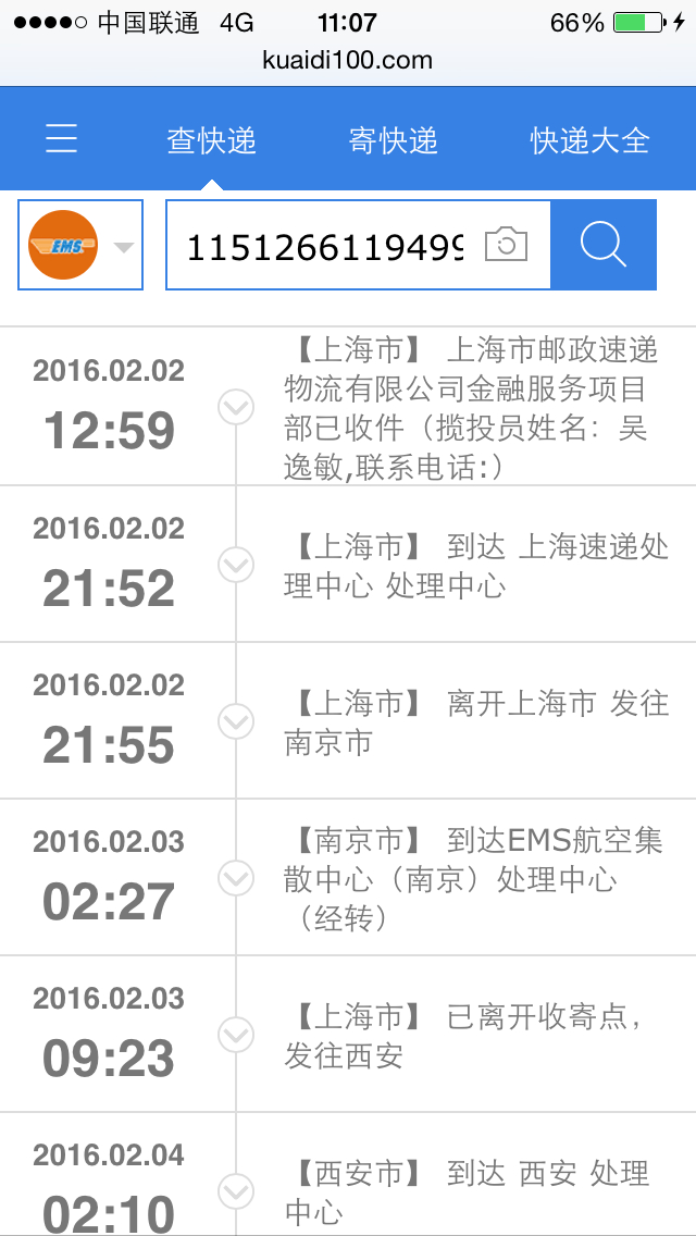为毛都是骂EMS的呢。。。我的挺快啊。刚打电话问了快递员说是今天就送!!没想到年前居然能送到。意外之喜啊。。。。。