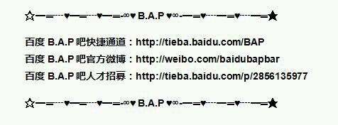 也祝愿贵吧越办越好 愿两吧友谊长存 欢迎常来B.A.P吧玩