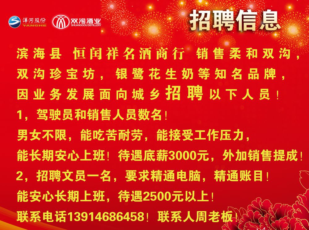 滨海的朋友 找工作的看过来,帮公司招聘的