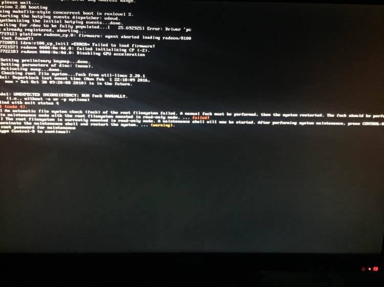 fsck是filesystem check,應該是root filesystem /dev/sda1出了些小問題,沒有大礙,修復就可以了