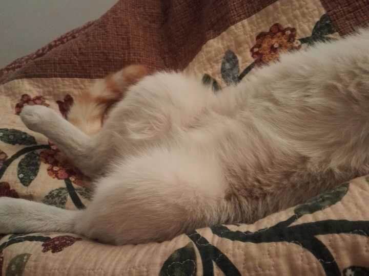 还有一只,我家肥肥的毯子,大白跟毯子是冤家对头,两只永远不会有交集,除非打架