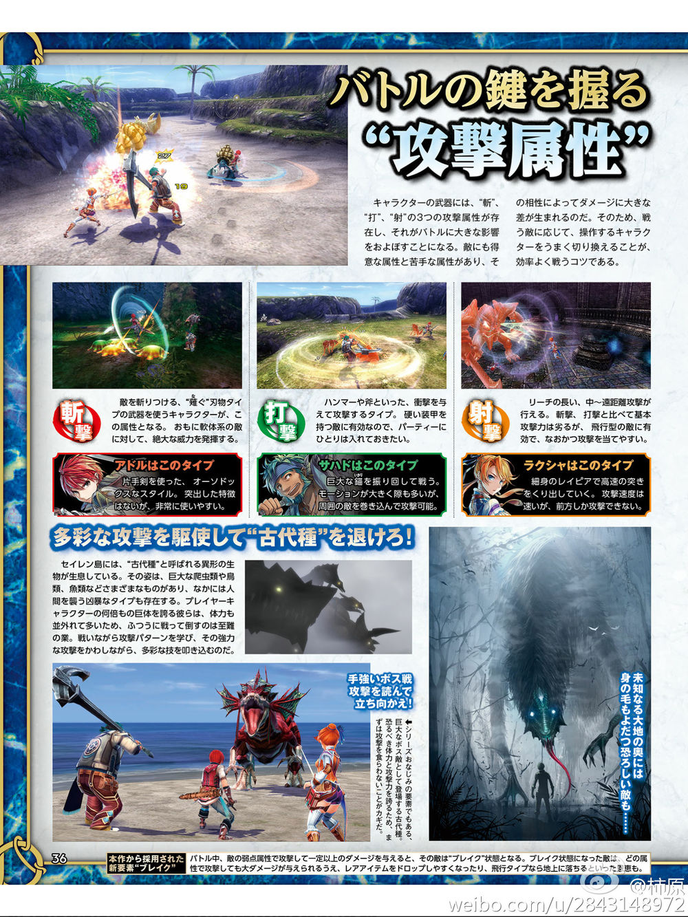 ・スタッフコメントより:ブレイクの爽快感を重視している。PSVita版はタッチが便利な部分は対応させる予定。古代種の攻撃は一撃でアドルたちが全滅する可能性も。古代種は竜とは全く別の生物で、アルタゴの五大竜とは特に関係ない。