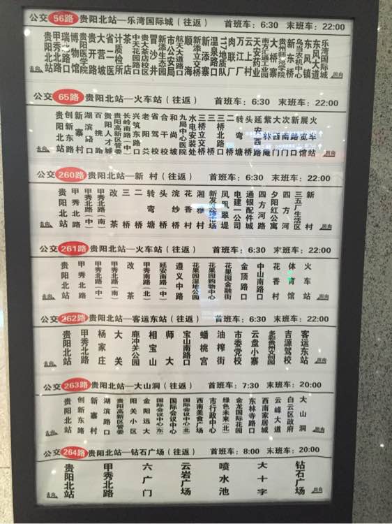 公告:贵阳北站公交车次及始发、收班表